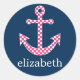 Adesivo Redondo Âncora de Bolinhas rosa-claro com nome personaliza