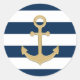 Adesivo Redondo Âncora Dourada de Stripes Brancas Azuis Marinhos N