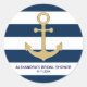 Casamento náutico, chá de fraldas, chá de panela, adesivos/ etiquetas para os seus favores, envelopes ou outros. Âncora em faixas de ouro e marinho azul e branca. Adicione nomes de noiva e noiva e data de casamento ou aniversário.