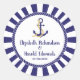 Personalize este adesivo náutico moderno, elegante e na moda. design de padrão de faixa azul e branca com uma âncora de entrega de marinho no topo. Uma modelo para uma fácil personalização dos seus detalhes de casamento, como nomes de noiva e noiva, e data de casamento. O mesmo design está disponível em outros suprimentos de papel de carta de casamento para carregar do tema do casamento náutico no estilo.