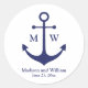 Âncora náutica azul marinho e branco monograma personalizado iniciais, nomes e data casamento presente moderno elegante e sofisticado Stickers redondos clássicos.