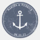 Os autocolantes náuticos redondos (ou selos de envelopes) apresentam uma âncora e um texto branco sobre um fundo azul-marinho intacto. Personalize com nomes e data. Perfeito para casamentos, salvar os anúncios de data e noivado, favores, chás e comemorações de aniversário.