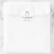 Essas adesivos personalizados dizem Engajado! junto com um anel de noivado de diamante azul com faixa de prata e os nomes dos noivos na parte inferior. Perfeito para uma festa de noivado ou anúncio de save the date!