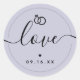 Salve a data com amor em roteiro, data e anéis de casamento gráficos em adesivo roxo lavanda claro.