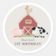 Este adesivo/etiqueta de aniversário bonitinho e moderno, neutro em termos de gênero, apresenta um porco, galinha e vaca com um celeiro vermelho sobre um fundo bege enquadrado por uma fronteira branca. Personalize para suas necessidades. Você pode encontrar produtos correspondentes na minha loja.