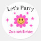Este é um adesivo de aniversário de menina rosa, fofo, personalizado, com uma flor sorridente feliz com estrelas pequenas. Você pode alterar os detalhes no design usando modelo personalizado