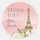 Cor-de-rosa e ouro elegantes com festa de aniversário floral Eiffel Torre floral de cor-de-água branca (corresponde à nossa coleção Sweet 16) com adesivo "Obrigado" personalizado.
