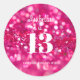 Adesivo Redondo Aniversário de 13 de Glitter Rosa Quente