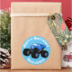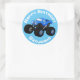 Adesivo Redondo Aniversário de animação de caminhão de monstro azu