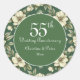 Com lindos motivos florais em marfim sobre um fundo esmeralda com motivos florais vintage e atemporais, este adesivo pode ser usado no aniversário de casamento de 14 anos em Marfim ou de 55 anos em Esmeralda, ou para qualquer outro aniversário de casamento. Pode ser usado como adesivo de selo de envelope para os convites de aniversário do casal, lembrancinhas, sacolas ou para qualquer outra papelaria da sua coleção de papelaria personalizada. Você pode personalizar os nomes do casal, a data do aniversário de casamento e o ano atual do aniversário!
