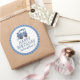Faça o aniversariante se sentir especial com esses adesivos personalizados que leem Feliz Aniversário, e que estejam prontos para personalizar com o nome e a idade do seu filho. Tenham uma ilustração de trem azul e uma borda listrada.