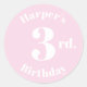 Aniversário de criança moderno Número personalizado de nome rosa claro Coluna Coluna Clássica Redonda, Autocolantes disponíveis em muitas formas
