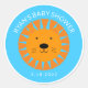 Este bonitinho e bonito adesivo com tema animal com uma adorável ilustração laranja com uma pequena cabecinha de leão laranja e texto personalizado de texto de chá de fraldas e data em azul brilhante dentro de um círculo decorativo branco é uma boa escolha para o seu chá de fraldas, aniversário de bebê, etc. Personalize-o para torná-lo especial.