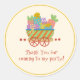 Cores brilhantes e um cheio de presentes em um adesivo...só o que o seu obrigado precisa para enrolar tudo. A ilustração original adiciona algum capricho e diversão a este obrigado de festas bonitinho que você cola. Compre a coleção de cheios para coordenar convites, obrigado cartões, balões e muito mais!
