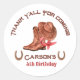 Adesivo Redondo Aniversário Do Cowboy Do País Ocidental Obrigado A