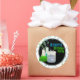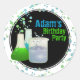 Beakers, frascos e muitas bolhas é uma fórmula para diversão neste colorido adesivo de aniversário do tema do experimento científico do laboratório. Experimente o texto como preferido.