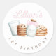Leite e biscoitos lindos, obrigado de aniversário com um arco rosa.