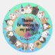 Aniversário do Porco da Guiné Obrigado O Clássico Vinheta Redonda Diga obrigados aos seus convidados com estes adoráveis vinhetas. Excelente de festa de aniversário temática de cobaia. Eles apresentam ilustrações bonitas de cobaias vestindo chapéus de festa e balões coloridos no fundo azul verde médio e gradiente. Design de festa de aniversário perfeito para crianças mais novas e mais velhas, donos de cobaias, pais de cobaias ou amantes de os animais. Memória maravilhosa!