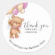 Adesivo Redondo Aniversário do Teddy Bear PINK Balões Obrigado