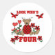 Um joaninha do urso de ursinho, umas flores vermelhas do coração, e um texto do texto que leia o "olhar que é quatro" em um 4o design bonito do aniversário.