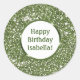 Adesivo Redondo Aniversário Feliz Personalizado de Textura de Folh