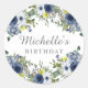 Adesivo Redondo Aniversário Floral em Aquarela Azul Marinho Amarel
