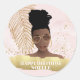 Adesivo Redondo Aniversário, Mulher Negra, Folha Tropical Dourada,