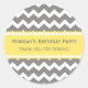Agradecemos as etiquetas para uma festa de aniversário que você pode personalizar com seu nome e texto. Divertido e moderno em cinzas escuras de carvão, padrão brilhante de zigzags amarelo-limão e branco chevron. Estes adesivos fazem uma adição elegante e sofisticada aos favores da festa de aniversário.