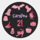 Adesivo Redondo Aniversário preto rosa do Dia das Bruxas