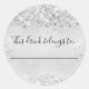 Para uma festa de aniversário giro e glamourosa. Um fundo metálico falso prateado com poeira falsa brilhante. Com o texto: Esta bebida pertence a: Espaço para você escrever seus nomes de hóspedes manualmente.