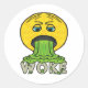 Anti-Woke design apresenta uma pessoa vomitando sobre o sinal de "Woke" abaixo. Uma declaração óbvia sobre todas as coisas, Woke.