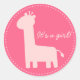 Adesivo Redondo Anúncio da Baby Girl - Silhute de girafa rosa