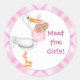 Adesivo Redondo Anúncio de Bebê de Stork & Twin Girls (pele escura