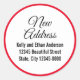 Esta mudança vermelha de etiqueta de endereço em preto e branco pode ser personalizada. Um roteiro preto elegante está no topo. Você pode editar o script para mostrar seu texto personalizado se desejar (mostrado: Novo Endereço). Em seguida, há linhas de texto de exibição para seu nome e novo endereço. Todo texto é preto e pode ser editado conforme desejado.