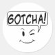 Apanhei-te! Bolha de fala. Adesivos redondos personalizados em preto e branco.