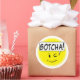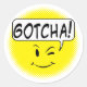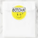Apanhei-te! Bolha de fala. Adesivos redondos personalizados em preto, branco e amarelo.