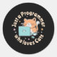 Design incrível e engraçado mostrando um gato no computador e o ditado "Apenas um programador que ama gatos". Um dever para todos os programadores e amantes de gatos.