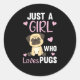 Adesivo Redondo Apenas Uma Menina Que Puga Adora Cachorro Kawaii P