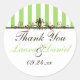 Esta faixa branca e verde de maçã redonda de 1,5" com rolhas castanhas a favor do casamento obrigado que você adesivo combina com o convite de casamento mostrado abaixo. Use-o para anexar aos seus favores de casamento, ou como um selo de envelope para seus cartões de agradecimento. Outras formas e tamanhos estão disponíveis.