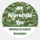 Adicione um pouco mais às suas faturas, envelopes ou papelada do funcionário com este adesivo de promocional comercial. Uma fotografia de bolhas verdes flutuantes fornece o fundo deste adesivo redondo. "Apreciamos você" e seu nome de empresa pode ser facilmente personalizado. Foto original - C. McGouldrick
