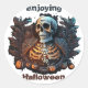 Adicione um toque de diversão de Halloween com o adesivo clássico redondo "Aproveitando o Halloween". Elevem seus artesanatos e presentes com este encantador adesivo, perfeito para adicionar um talento festivo às comemorações do Dia das Bruxas. Que a estação assustadora ganhe vida com esta design encantadora.