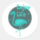 Adesivo Redondo Aproveite a vida Kawaii belo flamingo azul e escur