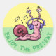 Adesivo Redondo Aproveite o presente com um caracol escutando músi