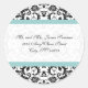 Adesivo Redondo Aqua Blue Black Damask Address Stickers