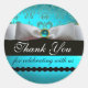 Adesivo Redondo AQUA BLUE GEMSTONE, BRANCO DAMASK RIBBK Obrigado