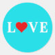 Adesivo Redondo Aqua Blue LOVE Heart