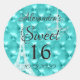 Teal Blue Paris França Torre Eiffel e Chandelier Sweet Dezesseis Partido Jeweled-Party Envelope ou Favor Seals. Estes adesivos do Partido são perfeitos para a Festa de aniversário Turquoise Blue Paris Sweet 16 que procura celebrar em aqua azul.