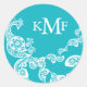 Adesivo Redondo Aqua Floral Paisley White Peacock Favor