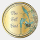 Pássaro bebê bebezinho Dourado e azul-lacado, pássaro-do-mato-esverdeado, pássaro-bebê no ninho Pai, olhando por cima da Mamãe de bebês, ali também. Fairycore Cottagecore Cottage Chic cuteness em um adesivo adorável só para você.