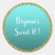 Adesivo Redondo Aqua Teal Dourado Mergulhado Brilho Glam Brillho F